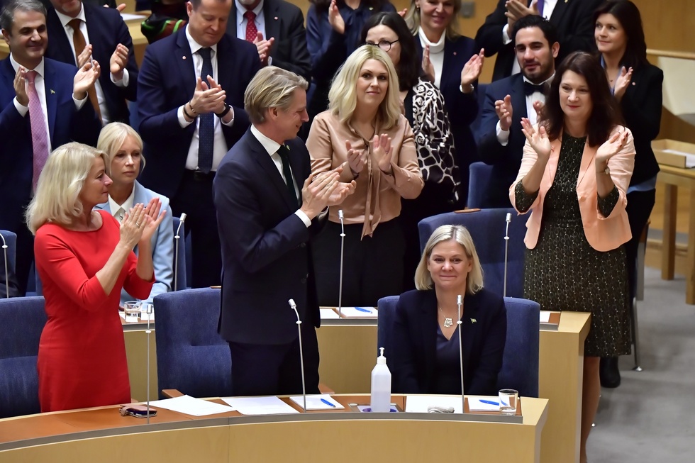 Magdalena Andersson går av som statsminister i Sverige. Stina Stjernkvist Magdalena Andersson S har valts till Sveriges första kvinnliga statsminister. Vänsterpartiet siger tirsdag aften til SVT at det nu støtter Magdalena Andersson.